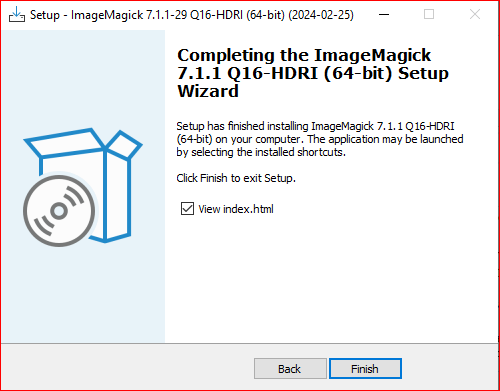 - After the installation is complete, you can verify that ImageMagick has been installed correctly by opening a command prompt.