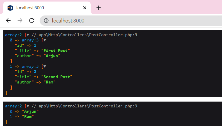 <?phpnamespace App\Http\Controllers;use Illuminate\Http\Request;use App\Services\PostServices;class PostController extends Controller{public function index(PostServices $post){dd($post->posts(),$post->postAuthors());}}